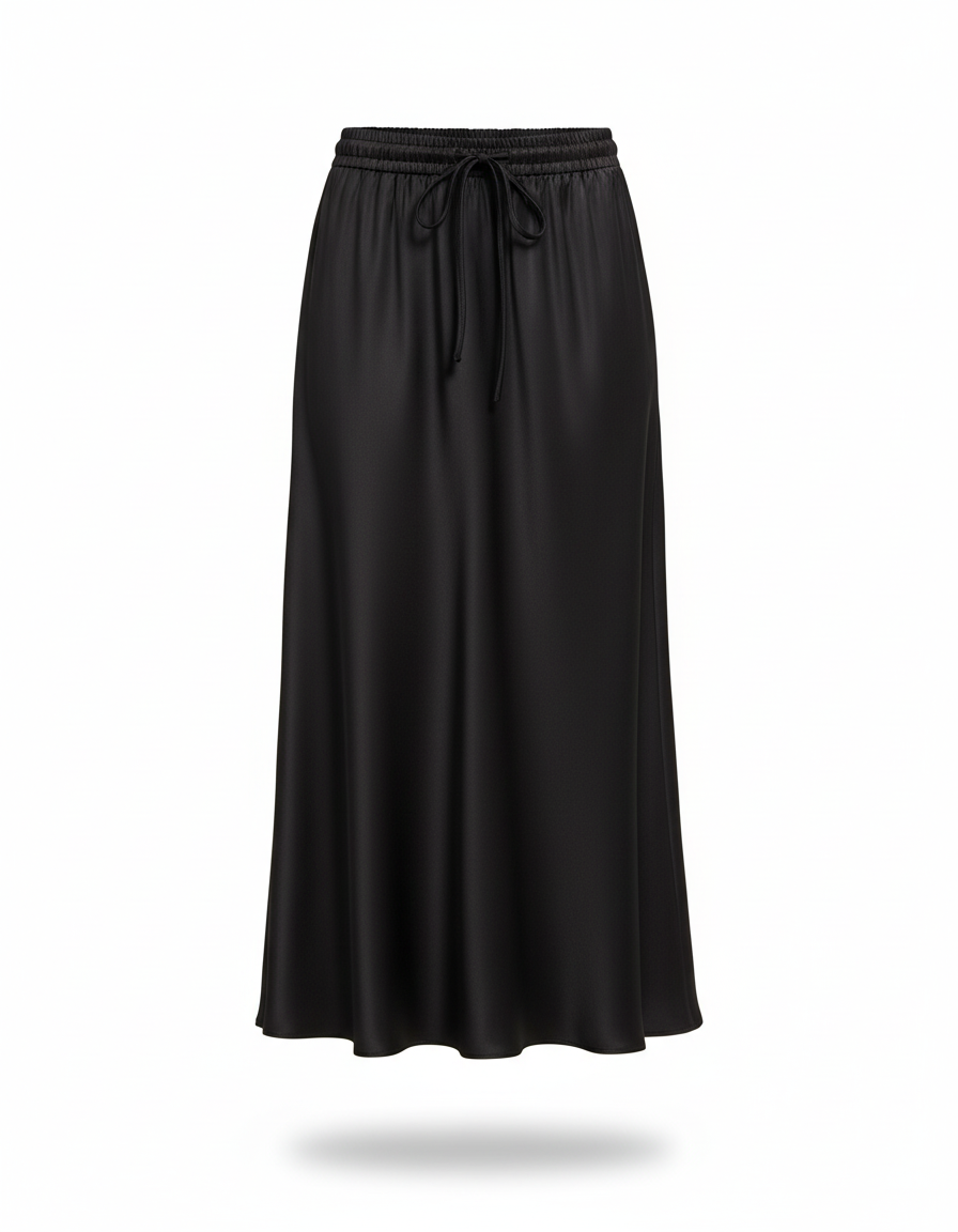 Jupe Trapèze en Satin Noir : L'Élégance Fluide au Quotidien