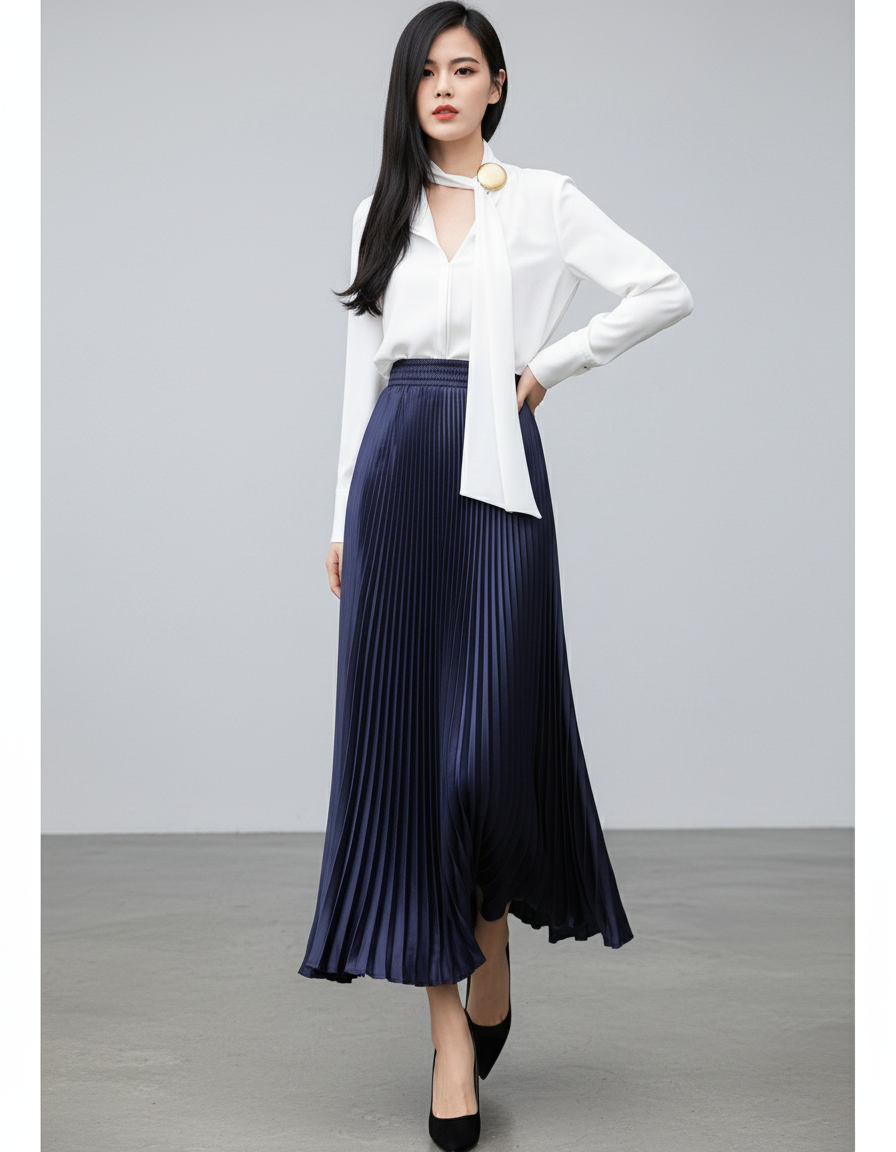 Jupe Plissée Bleu Marine Satin : L'Essence du Chic Moderne