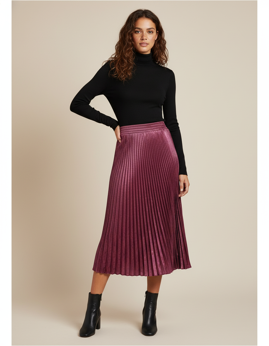 La Jupe Plissée Satin Bordeaux : L'Élégance Redéfinie pour la Femme Moderne