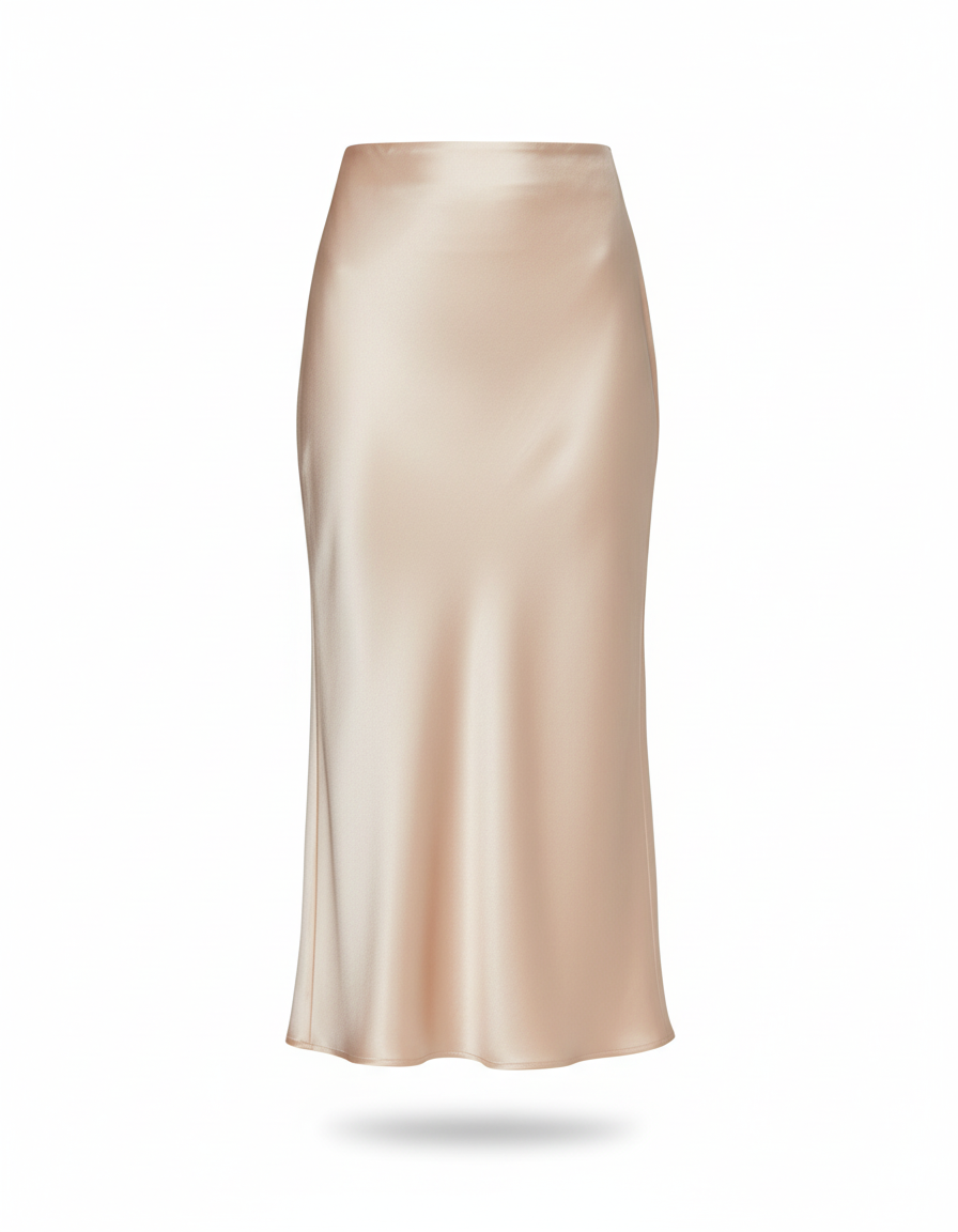 Plongez dans l'élégance intemporelle avec notre jupe midi en satin beige, parfaite pour toutes les occasions.