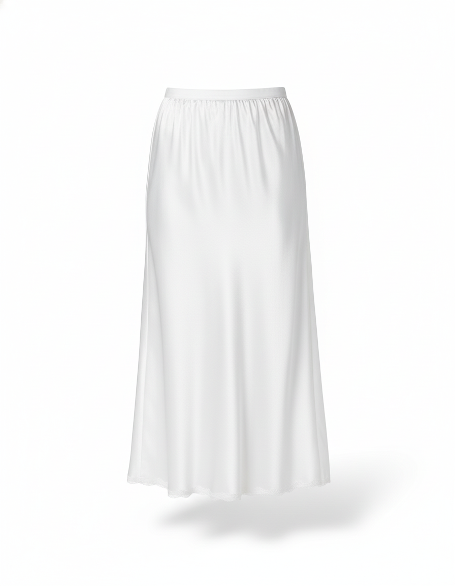 Jupe Satin Blanche Midi Fluide Légère