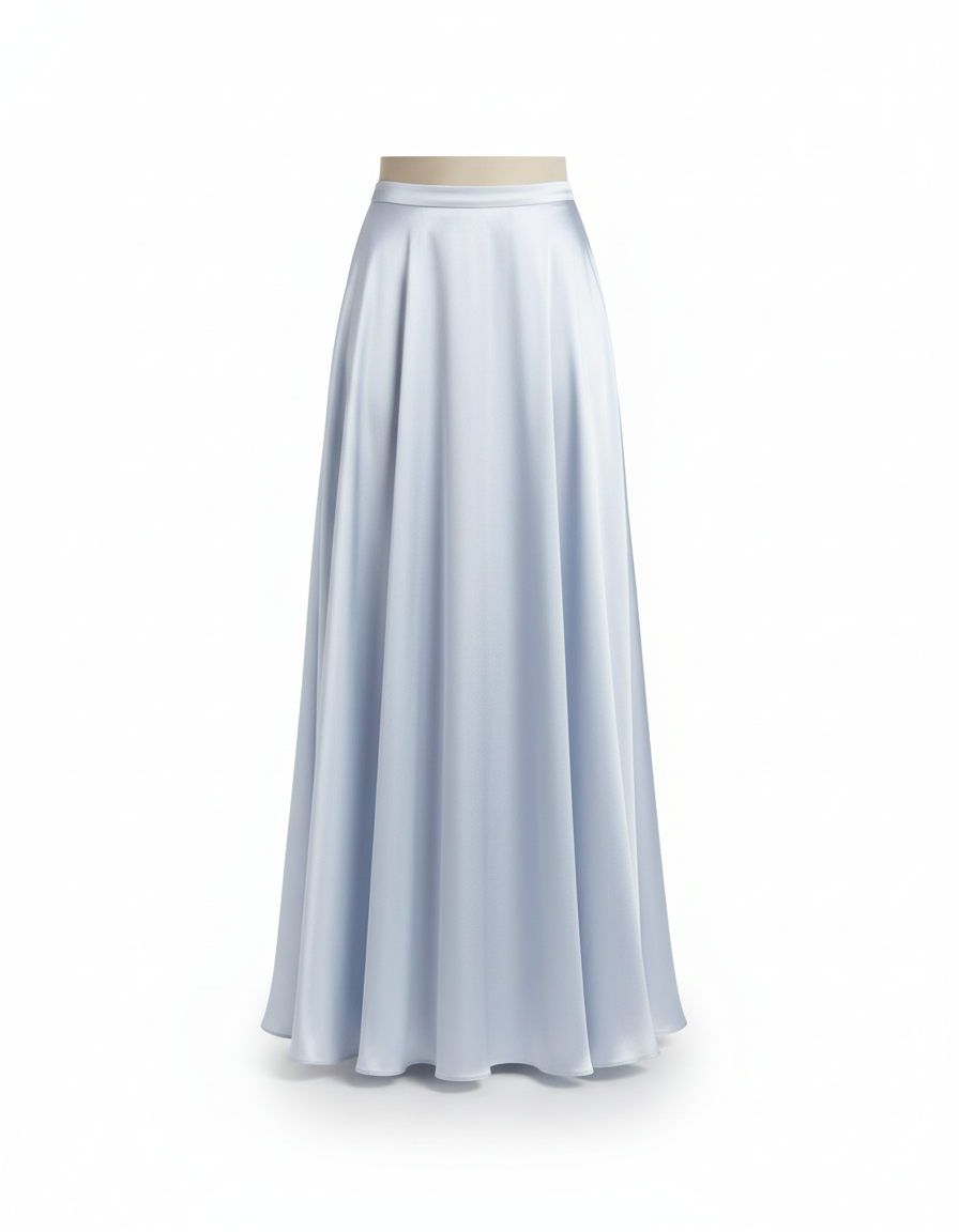 Jupe Satin Bleu Ciel Longue Fluide