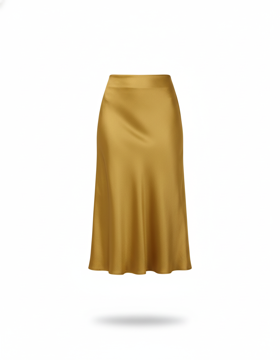 La Jupe Satin Champagne Midi : L'Éclat de l'Élégance Fluide