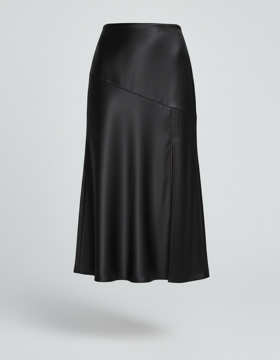 Jupe Satin Noire Fendue Élégante : Le Mouvement au Cœur du Style