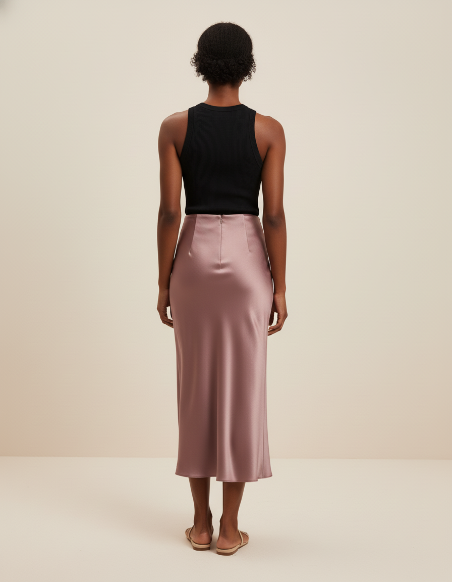 Conçue dans un satin somptueux couleur rose poudré, la Jupe Fluide Chic offre un tombé impeccable qui sublime chaque silhouette. Sa matière délicate épouse vos mouvements avec une grâce infinie, garantissant un confort absolu et une liberté totale, du premier pas de la journée jusqu'aux dernières heures de la soirée. Chaque fibre a été sélectionnée pour sa qualité supérieure, offrant une sensation douce et soyeuse sur la peau et un éclat subtil qui capte la lumière avec sophistication. C'est la promesse d'une élégance sans effort, où le bien-être rencontre le luxe.