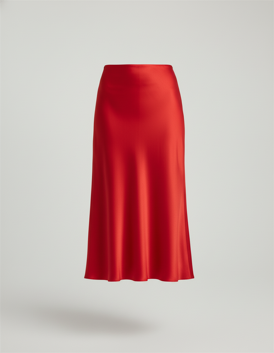 Conçue pour le mouvement et le confort, cette jupe offre un tombé fluide et aérien qui épouse délicatement votre silhouette sans jamais restreindre. La qualité de notre satin garantit une liberté de mouvement totale, vous permettant de danser et de vous déplacer avec une aisance absolue. Son lustre subtil capte la lumière, mettant en valeur la vivacité du rouge tout en assurant un confort optimal tout au long de la journée ou de la nuit. Sentez-vous confiante et irrésistible, libre d'exprimer votre style avec cette pièce d'exception.