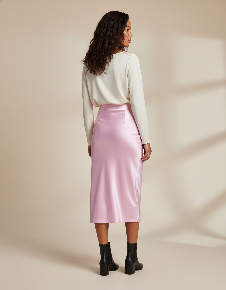 Incarnation parfaite de la sophistication, notre Jupe Satin Soie Moulante en rose délicat est la pièce maîtresse pour vos soirées inoubliables. Conçue pour épouser gracieusement vos courbes, sa matière satinée capte la lumière à chaque mouvement, offrant un éclat subtil et une texture douce au toucher. Associez-la à un top en soie ivoire et des escarpins nude pour une élégance intemporelle, ou osez un body noir et des bijoux audacieux pour une allure plus affirmée et glamour, idéale pour les événements nocturnes.