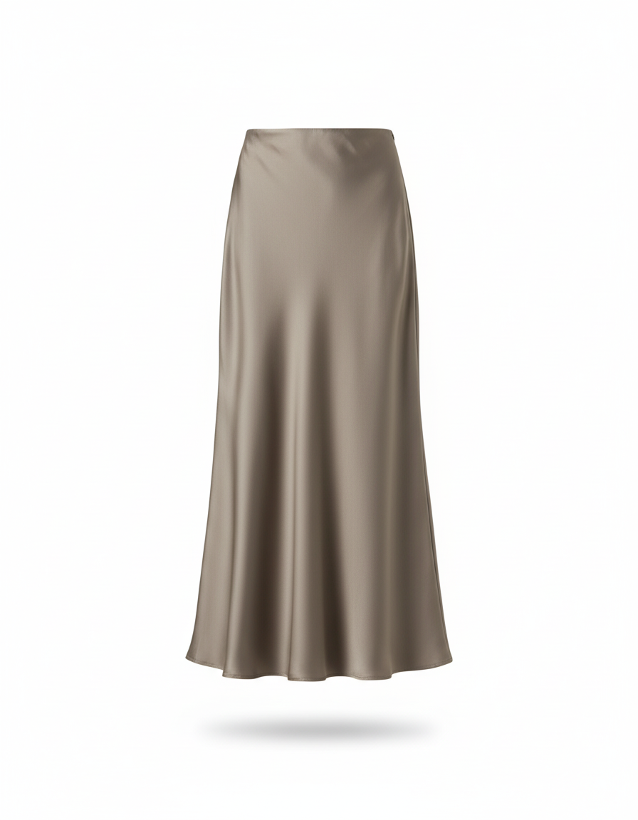 Élégance Fluide : La Jupe Beige Doré Satiné, Votre Allié Chic